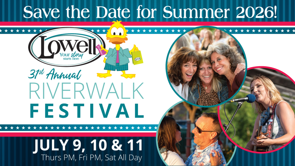 The Riverwalk Festival is celebrating 30 years! First held in 1995, the Riverwalk Festival was introduced as an annual fundraiser to support the Lowell Area Chamber of Commerce and its initiative to promote Lowell as a great place to live, work, and play.